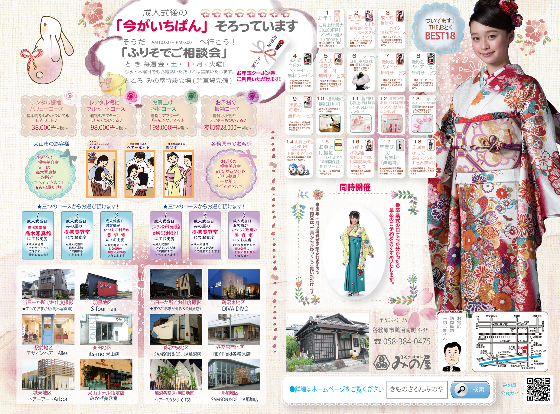 みの屋では「ふりそでご相談会」を、毎週金・土・日・月・火 の AM10:00~PM6:00 まで開催しております。